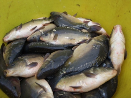 We have just received new stock for the 2012 season. 200 Roach, 200 Bream and 210lb of Mirror Carp ranging from 8oz t0 2.5lb. We split the stock evenly between Fir Tree pond and Heron Lake. We also had an extra 25 carp which we put in Willow Pond. The fish have come from Priory Fisheries. The strains of Carp are the classic Leneys which are the original English strain farmed by Donald Leney, long scaly and a steady grower with more history than any other. The second strain is the German Dinkensbhul, which is shorter framed,